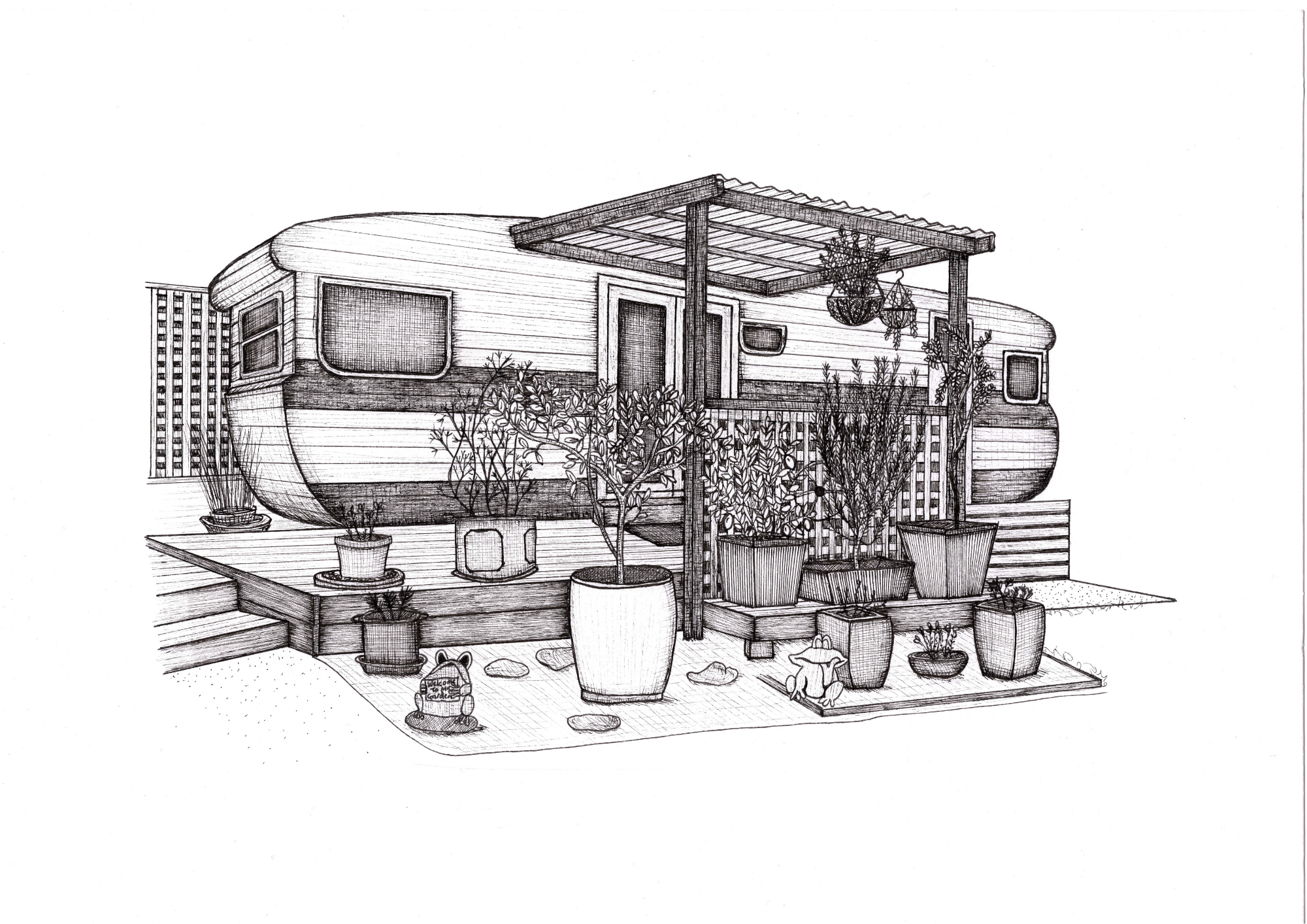 All drawings are created on A4 200gsm white paper using black Pigma Micron fineliner pens.